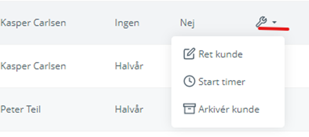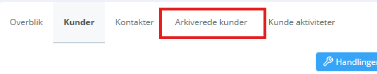 En kunde kan genskabes fra fanen ”arkiverede kunder”. Så længe kunden er genskabt, vil timerfunktionen blive pauset, og først genstartet idet kunden arkiveres igen.