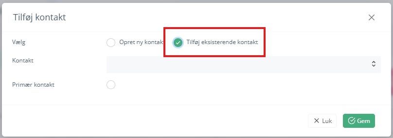 Tilføj eksisterende kontaktperson til kunde: