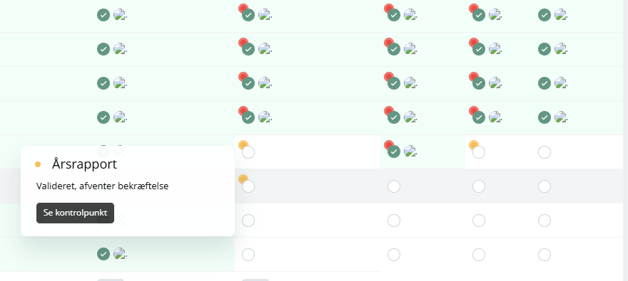 I statuslisterne vil de, i pkt. 1., opmappede punkter, nu validere den eksterne data. Tredjepartsvalideringen vil vise sig ved små blinkende ikoner, med følgende betydning: