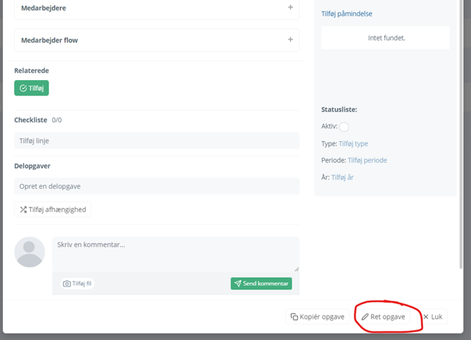 Redigering af eksisterende opgaver (fra kundeside)