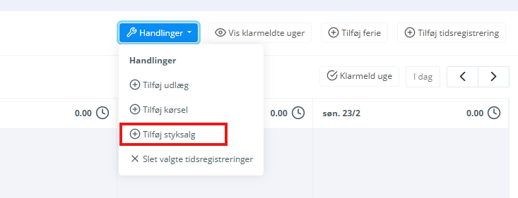 Styksalg kan oprettes via ugekladden i tidsregistreringsmodulet.