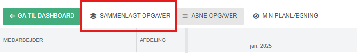 Ønsker man blot et overblik over selve kapacitetsudnyttelsen, kan der med fordel simplificeres viewet, således at fokus ændres fra topview til bundview. Her findes knappen (øverst i venstre hjørne) "sammenlæg opgaver", hvilket slår alle linjer, for alle medarbejdere, sammen til én linje pr. medarbejder.